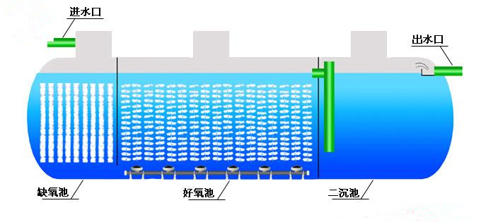 一體化污水處理設(shè)備是將一沉池、I、II級接觸氧化池、二沉池、污泥池集中一體的設(shè)備,并在I、II級接觸氧化池中進(jìn)行鼓風(fēng)曝氣,使接觸氧化法和活性污泥法有效的結(jié)合起來,節(jié)省了找人設(shè)計污水處理工藝和做基礎(chǔ)建設(shè)的繁瑣。